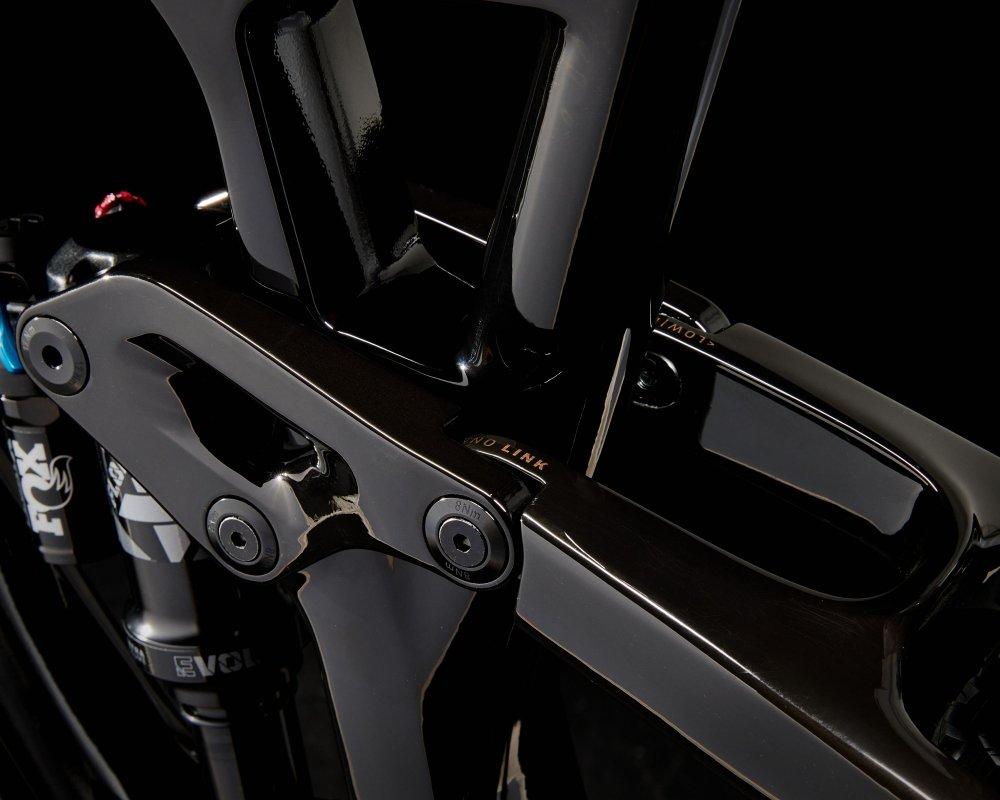 Rahmen: OCLV Mountain Carbon, integriertes Staufach, verstellbarer Steuersatzwinkel, per Mino Link abstimmbare Geometrie, einstellbare Progression, geführte interne Zugverlegung, Magnesiumumlenkhebel, 34,9 mm Sitzrohrdurchmesser, ISCG 05, 55 mm Kettenlinie, BSA 73, Unterrohrschutz, Shuttle-Guard, ABP