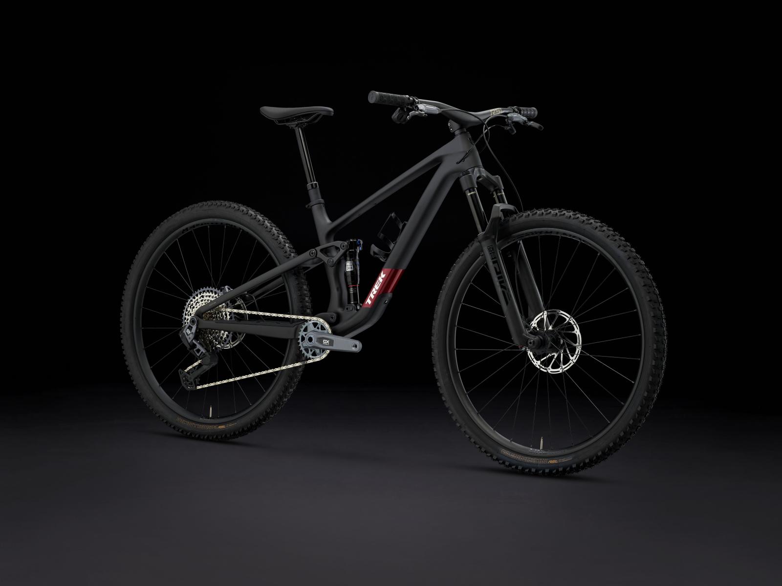 Einen Rahmen aus OCLV Mountain Carbon mit vierfach verstellbarem Mino Link an der unteren D�mpferaufnahme zur Feinanpassung der Rahmengeometrie und des Hebelverh�ltnisses des Fahrwerks. Eine RockShox Pike Select+ Gabel mit 130 mm Federweg, DebonAir Luftfeder und Charger 3.1 RC2 D�mpfung sowie einen RockShox Deluxe Ultimate RCT Hinterbaud�mpfer mit 120 mm Federweg. Abgerundet wird die Ausstattung von einer drahtlosen SRAM GX Eagle Transmission, hydraulischen SRAM Level Bronze 4-Kolben-Scheibenbremsen, einer Bontrager Line Variost�tze und Bontrager Line Comp 30 Tubeless-Ready-Laufr�dern.