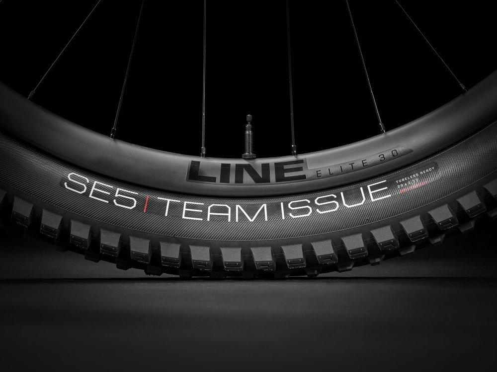 Reifen: Bontrager SE5 Team Issue, Tubeless Ready, Core Strength-Flankenschutz, Aramidwulstkern, 120 TPI, 29 x 2.50