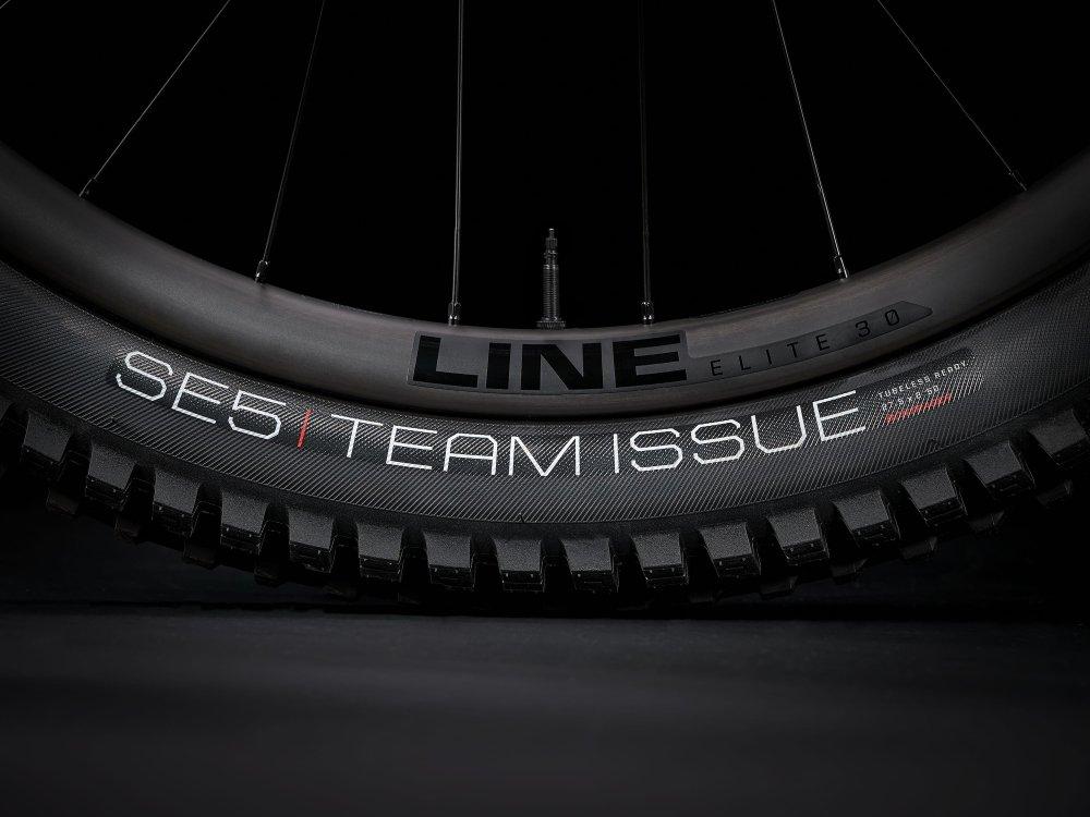 Räder: Bontrager Line Elite 30, OCLV Mountain Carbon, Tubeless Ready, 6-Loch-Scheibenaufnahme, Boost110, 15 mm Steckachse, 27.5"
