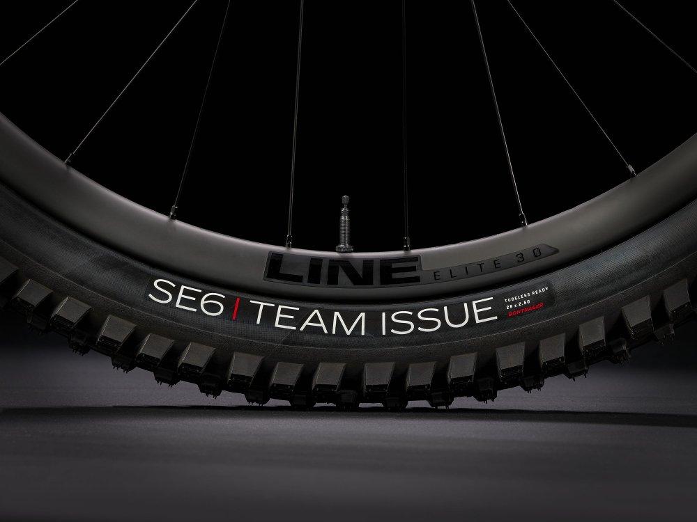 Reifen: Bontrager SE5 Team Issue, Tubeless Ready, Core Strength-Flankenschutz, Aramidwulstkern, 120 TPI, 29 x 2.50 // Bontrager SE6 Team Issue, Tubeless Ready, Core Strength-Flankenschutz, Aramidwulstkern, 120 TPI, 29 x 2.50